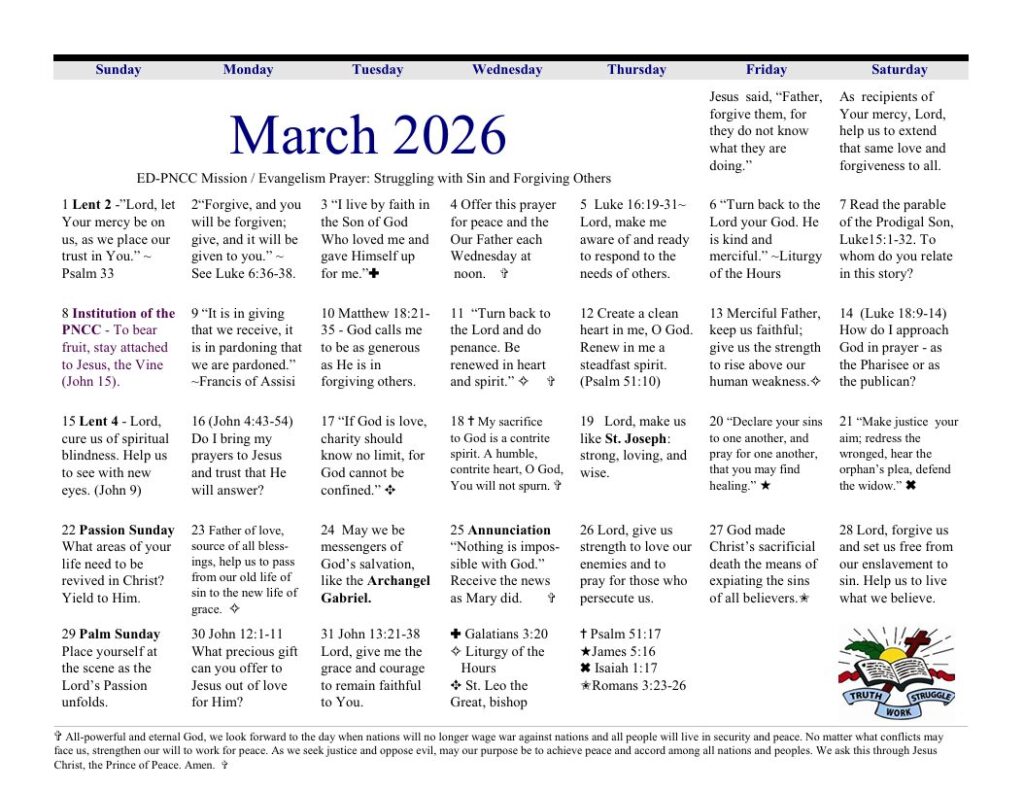 March 2026 Prayer Calendar